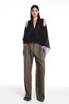 Blusa em crepe leve. Modelagem soltinha ao corpo com elástico na cintura. Possui decote transpassado com detalhes franzidos, manga ampla e assimétricas. Não possui fechamento.