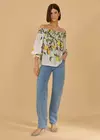 Blusa feita no tecido plano, em viscose, na estampa Limoni Siciliani. A peça possui lastex ombro-a-ombro, manga 3/4 com marcação em elástico no punho e babados sutis. Possui uma modelagem solta no decorrer do comprimento, proporcionando leveza e sofisticação ao vestir. Uma perfeita peça para apostar em seu look!