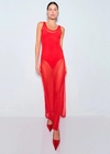 Vestido confeccionado em tecido de tule. A peça possui comprimento midi, caimento ajustado ao corpo, decote em U, mangas regatas e fenda lateral. Fechamento por zíper na lateral esquerda.